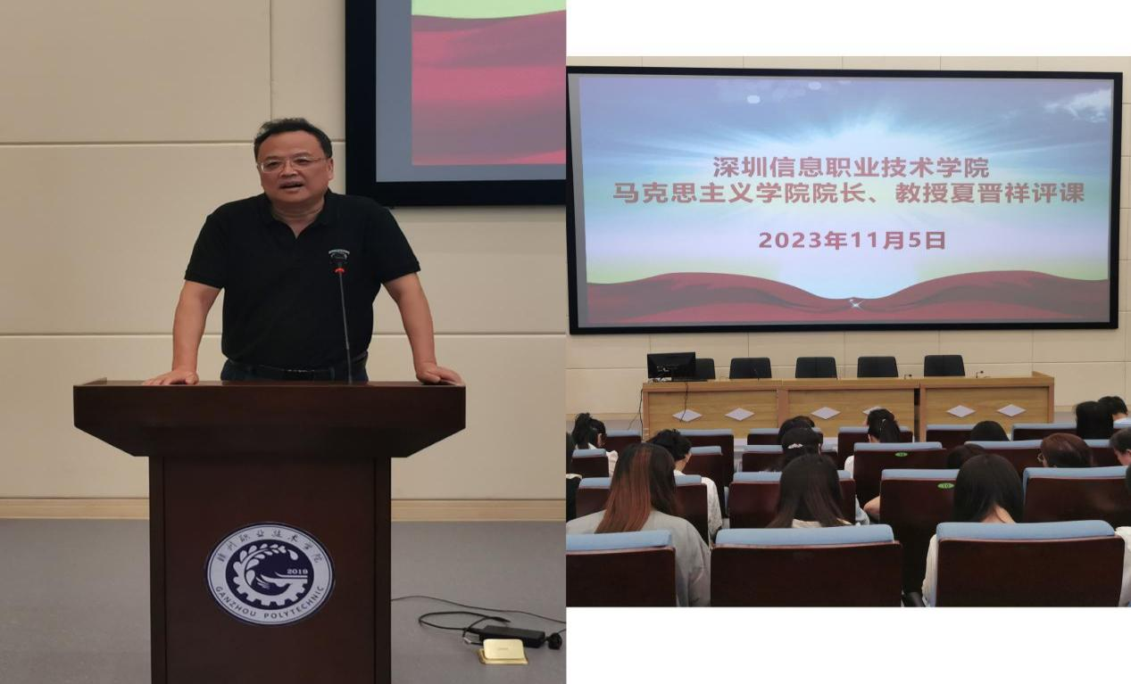 深圳信息職業技術學院馬克思主義學院院長、教授夏晉祥在評課環節中,肯定了范美琪老師從歷史邏輯、理論邏輯、實踐邏輯三個維度闡釋中國夢,堅持了政治性與學理性相統一,認為通過身邊案例詮釋課堂內容,增加了課堂的吸引力和感染力,能很好地讓學生理解與共情,充分調動了學生學習興趣。同時從課堂教學創新、課堂效果等方面提出了指導性建議和意見,他指出,課堂應堅持感性與理性相統一,啟發性及激勵性相統一,要根據學生的認知突出重難點,從而達到知情意行相統一。