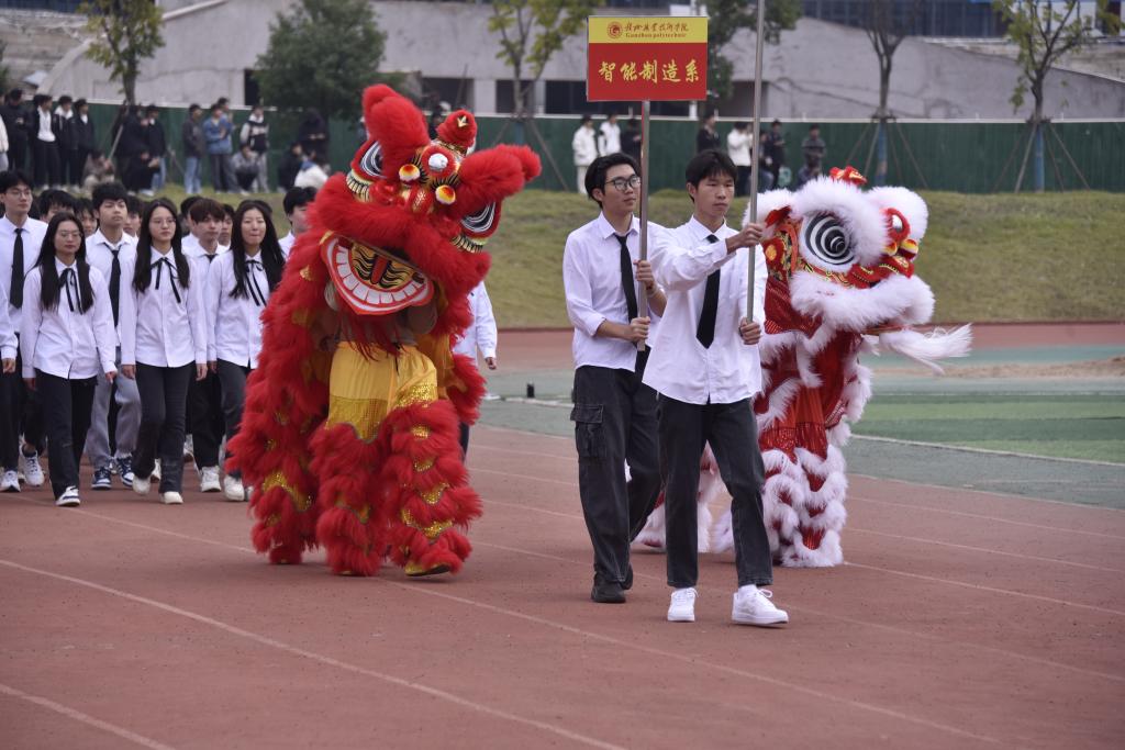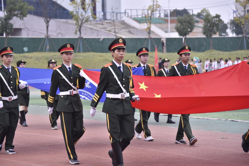 在國旗護衛隊引領下,此次運動會開幕式正式拉開序幕。伴隨著激昂的旋律,邁著鏗鏘有力的步伐,各系部代表隊入場,展現各系部朝氣蓬勃的面貌。