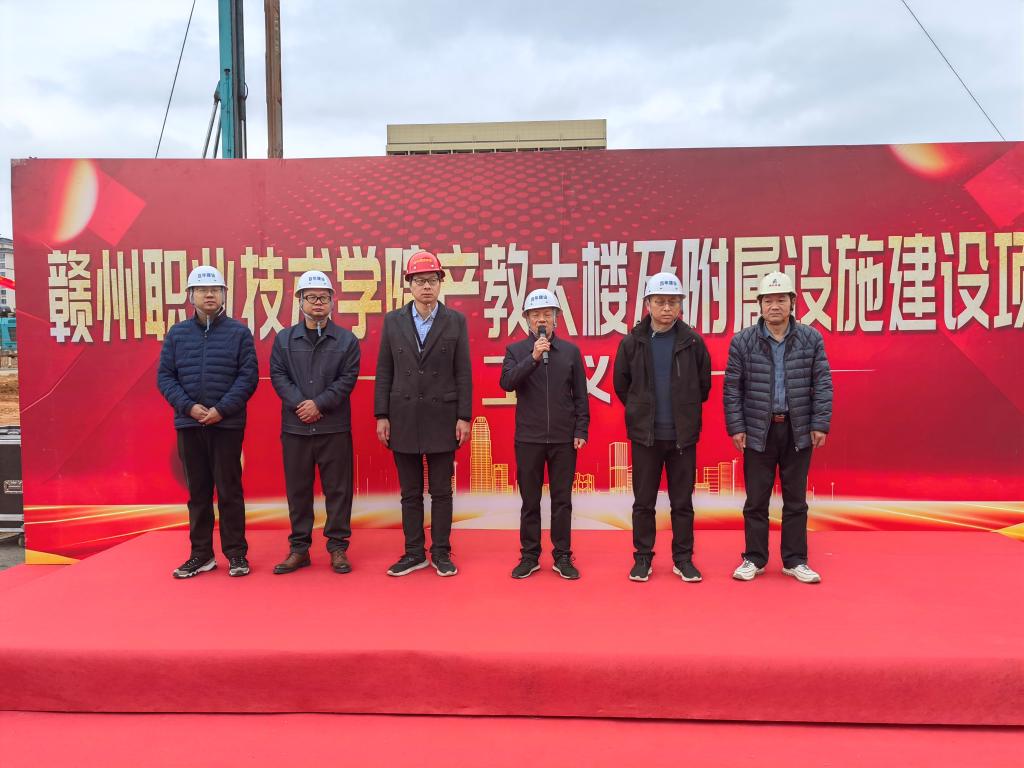 12月12日上午,學院產教大樓及附屬設施建設項目開工儀式隆重舉行。學院黨委委員、副院長賴昭忠出席活動并宣布開工,贛州城投工程管理有限公司、學院項目辦及各參建單位代表共計40余人參加開工儀式。