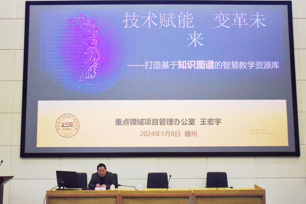 1月8日上午,學院在圖書館報告廳開展“技術賦能 變革未來——打造基于知識圖譜的智慧教學資源庫”專題講座。本次講座邀請了中國教學儀器設備有限公司總工程師、全國重點領域教學資源建設項目管理辦公室主任、全國虛擬仿真實驗教學創新聯盟執行秘書長王宏宇為主講人。講座由學院黨委副書記、院長吳躍文主持,學院中層以上干部、各教研室正副主任及部分教職工參加了講座。