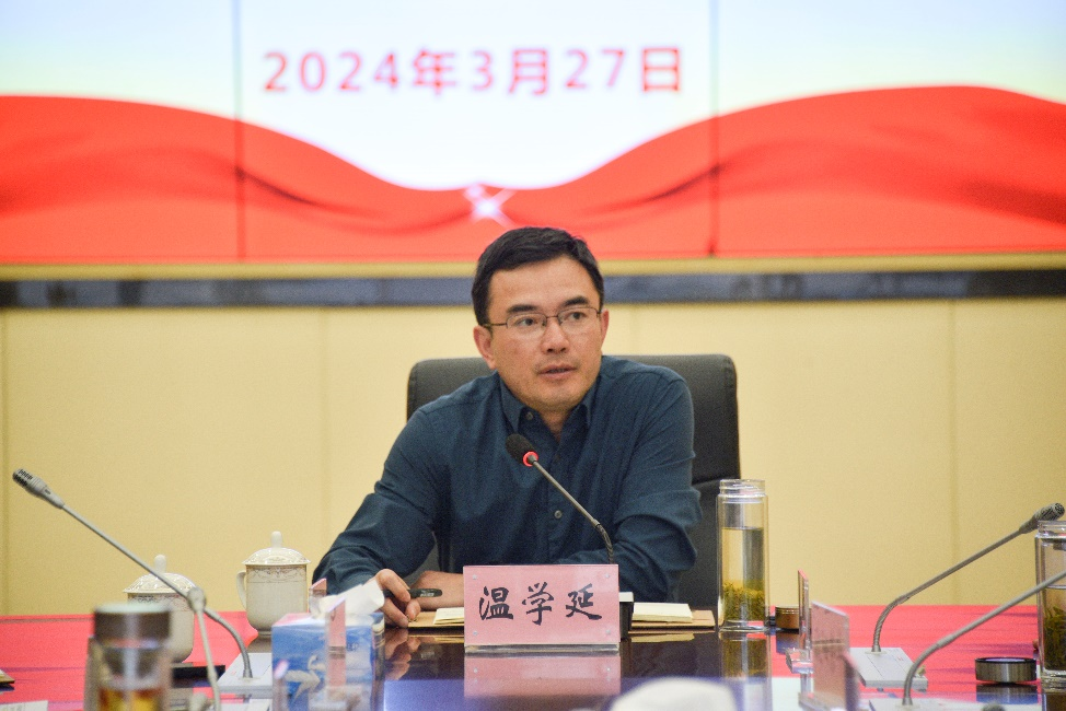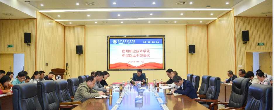 3月27日下午,學校在行知樓二樓會議室召開中層以上干部會議,黨委書記溫學延出席并講話,會議由黨委副書記湯曉軍主持,學校在家領導和中層以上干部參加會議。