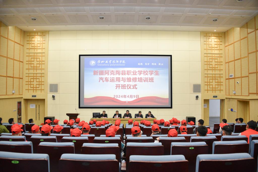 儀式在莊嚴的國歌聲中拉開序幕。在開班儀式上,汽車工程學院院長孫愷解讀了《贛州職業技術學院承接阿克陶職業院校學生培訓工作方案》,并介紹了培訓教學安排。新疆阿克陶縣參訓學生代表努爾扎提·圖爾蓀、教師代表賈建喜,我校培訓教師曾海源先后發言。