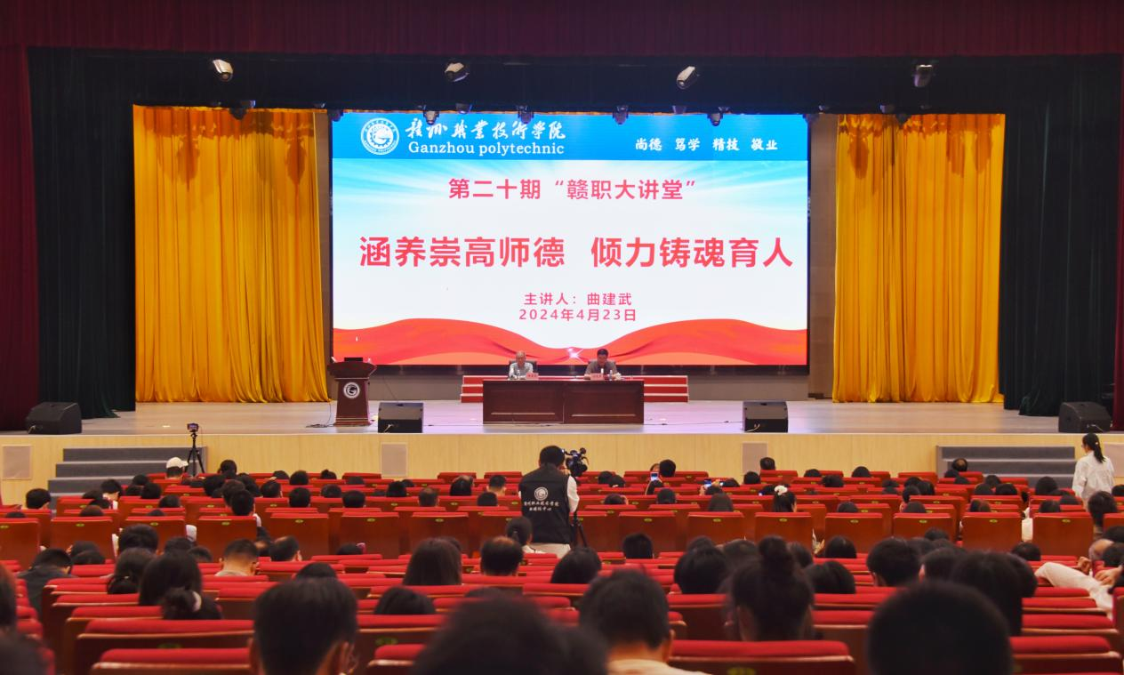 為全面貫徹習(xí)近平總書記關(guān)于教育的重要論述和教師隊(duì)伍建設(shè)的重要指示精神,進(jìn)一步推進(jìn)學(xué)校思想政治和師德師風(fēng)建設(shè),全面提升全校教職工思想政治素質(zhì)和職業(yè)道德水平,4月23日下午,全國時(shí)代楷模、大連海事大學(xué)曲建武教授應(yīng)邀做客學(xué)校第二十期“贛職大講堂”,為全校師生帶來了“涵養(yǎng)崇高師德,傾力鑄魂育人”專題講座,講座由學(xué)校黨委副書記湯曉軍主持,學(xué)校在家領(lǐng)導(dǎo)、全體教師及學(xué)生代表在主會(huì)場參加講座,其他同學(xué)在各班教室通過線上觀看的方式聆聽了講座。