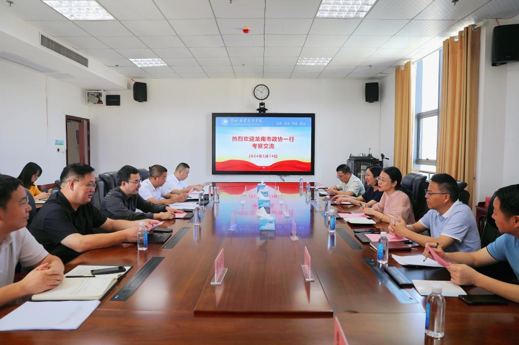 5月14日上午,龍南市政協副主席王惠敏一行蒞臨我校考察交流,黨委書記溫學延參加座談會并講話,調研座談會由黨委副書記湯曉軍主持,學校副校長歐陽榮華,龍南市政協教科衛體和文化文史學習委主任鐘樂耕,以及學校教務處處長于成龍、繼續教育部和教務處相關人員參加座談會。