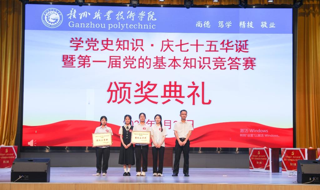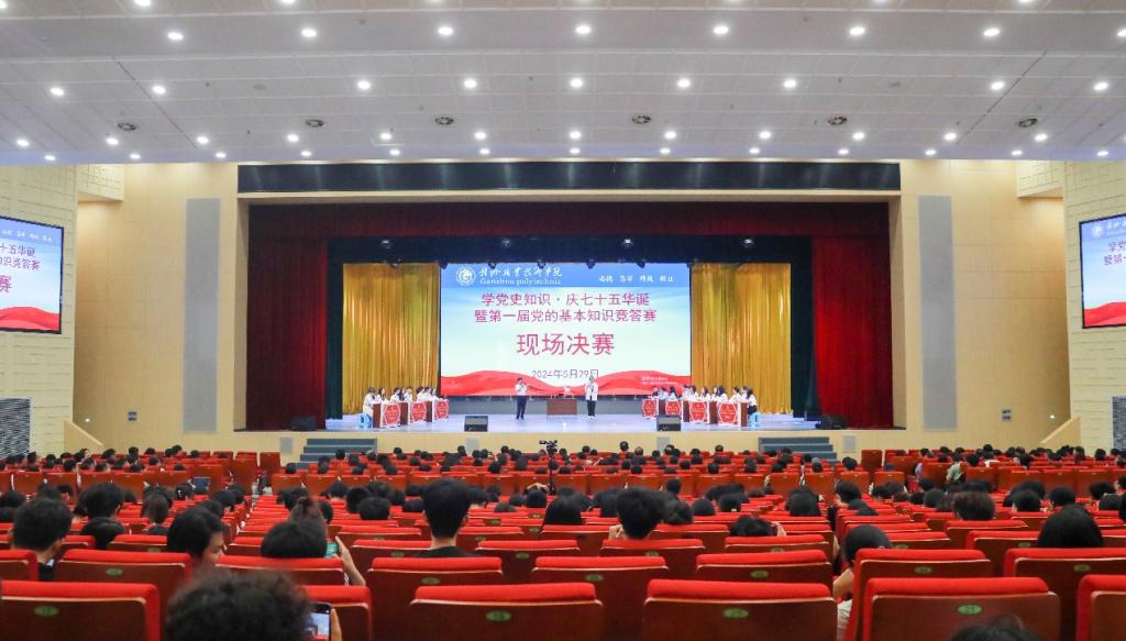 為深入學習貫徹習近平新時代中國特色社會主義思想,全面貫徹落實黨的二十大精神和習近平總書記考察江西重要講話精神,熱烈慶祝中華人民共和國成立75周年,教育引導廣大師生學黨史、強黨性、跟黨走,5月29日下午,學校在行知樓一樓報告廳舉辦了“學黨史知識 慶七十五華誕”暨第一屆黨的基本知識競答賽決賽。學校黨委副書記湯曉軍,黨委委員、紀委書記廖凌等在家校領導參加并觀摩了本次比賽,學校師生黨員、各二級學院學生代表、經開區技工學校師生代表等共計八百余人到場觀看。