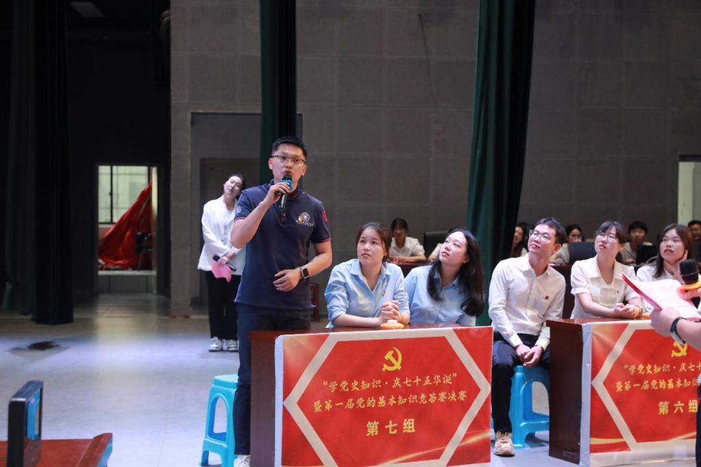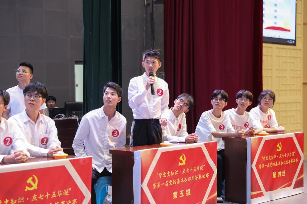 比賽分為教師組和學生組,分別以黨支部、二級學院為單位組隊參賽。經過初賽激烈角逐,兩組共有十二支隊伍進入此次決賽,另外,特別邀請到了經開區技工學校教師代表隊參賽。比賽設置了必答題和搶答題兩個環節,題目內容涵蓋習近平新時代中國特色社會主義思想、黨的二十大精神、習近平總書記關于教育的重要論述、黨史知識以及《中國共產黨紀律處分條例》《中國共產黨普通高等學校基層組織工作條例》等黨內法規制度和有關文件等方面,以現場答題的形式進行。在必答題環節中,各組選手分兩輪一一作答,參賽選手們思路清晰,回答問題時反應快、準確率高。在搶答題環節中,參賽選手們以扎實的黨史理論基礎、敏捷的答題反應、高超的搶答技巧,點燃了現場師生的熱情,將本次比賽活動推向頂峰。另外,本次競賽還設置了觀眾互動,極具吸引力和趣味性的有獎競答形式吸引了在場觀眾紛紛舉手答題贏取獎品,現場答題氛圍濃厚熱烈。