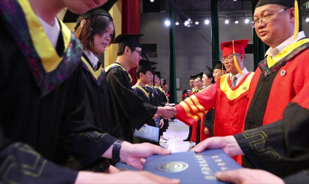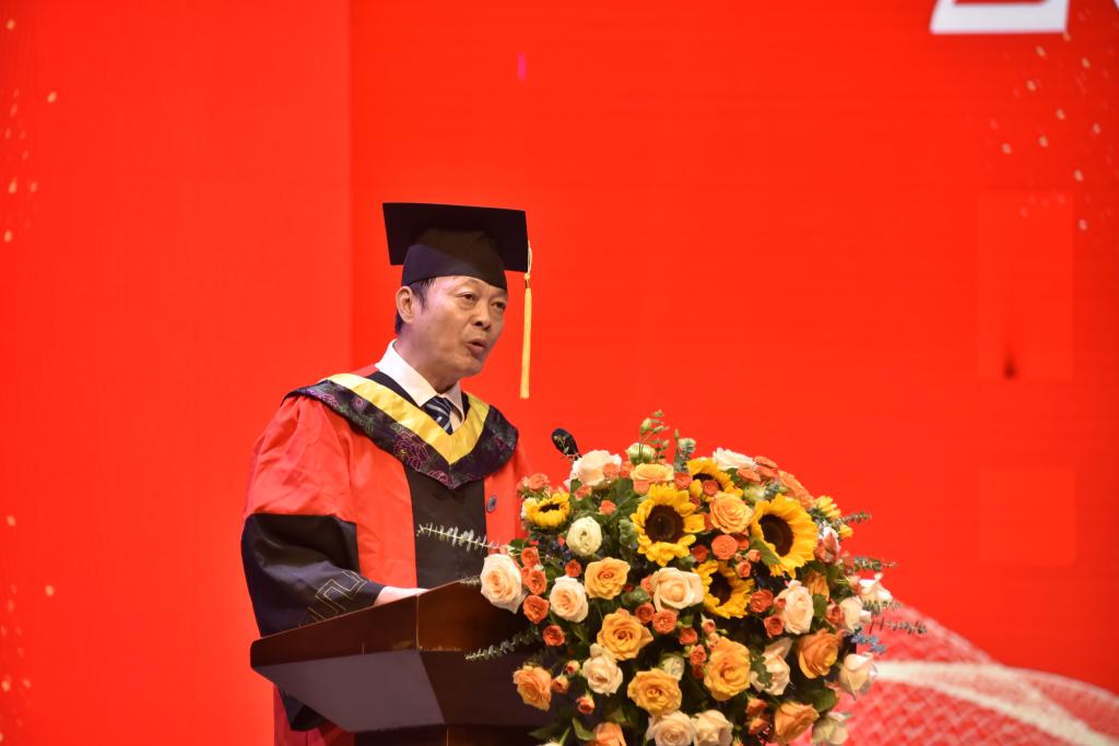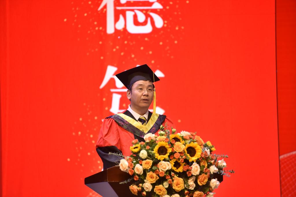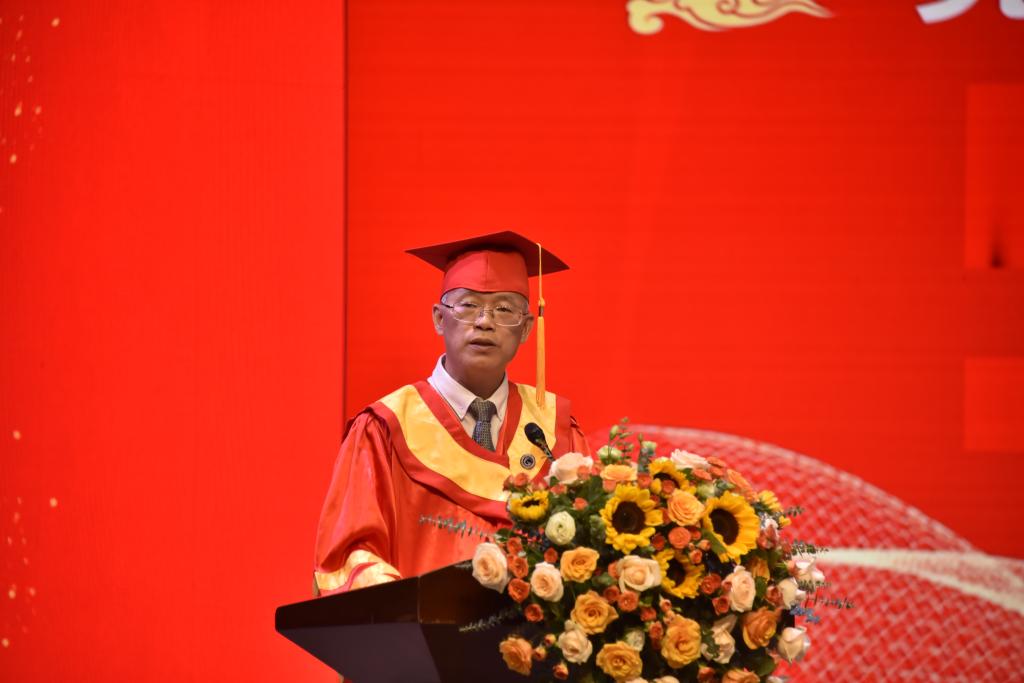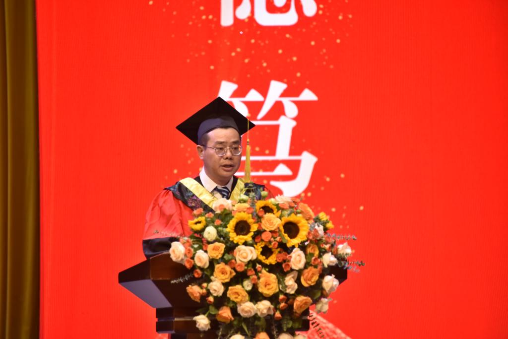 黨委副書記、校長吳躍文以“講究——成就多彩人生”為題,與畢業(yè)生們分享了人生奮進(jìn)的經(jīng)驗(yàn),對全體畢業(yè)生在未來人生的新征程中提出了七點(diǎn)“講究”寄語:第一,講究時(shí)代。要經(jīng)常問問自己,有沒有跟上新時(shí)代?在忙忙碌碌的征程中,要停下來想想,問一問自己:新思想有沒有落下?新知識(shí)有沒有遺落?新技術(shù)有沒有學(xué)會(huì)?新潮流有沒有忽視?新生活有沒有體會(huì)?跟上新時(shí)代的步伐,才能成就新人生!第二,講究人生。人生的選擇開始迥異:有人奮進(jìn),有人躺平;有人學(xué)習(xí),有人游戲;有人創(chuàng)新,有人逍遙;有人內(nèi)卷,有人避世……相較上一代人的沒得選,你們是有得選,這是你們幸運(yùn),但也是巨大考驗(yàn)。如果選“奮進(jìn)”“學(xué)習(xí)”“創(chuàng)新”和“內(nèi)卷”,就能成就人生;如果選擇“躺平”“游戲”“逍遙”和“避世”,將失去這個(gè)時(shí)代,心境也將注定灰暗!第三,講究學(xué)識(shí)。新時(shí)代是個(gè)不斷學(xué)習(xí)和創(chuàng)新的時(shí)代。如果認(rèn)為畢業(yè)了,學(xué)習(xí)結(jié)束了,那就大錯(cuò)特錯(cuò)了。學(xué)校學(xué)習(xí)只是提供專業(yè)教育的一個(gè)理論和方法框架,真正的學(xué)習(xí)是依據(jù)崗位要求的不斷精進(jìn)!實(shí)踐崗位上的學(xué)習(xí)才是多巴胺分泌最多的學(xué)習(xí),才是鍛造成為大國工匠、科學(xué)家和創(chuàng)新人才的利器。在實(shí)踐崗位上“講究”學(xué)識(shí)才是文化人應(yīng)有的本色!第四,講究工作。對待工作,現(xiàn)代人是又愛又恨。恨的是工作經(jīng)常將人折磨得身心疲憊,愛是只有工作才能最集中地彰顯人生價(jià)值。如果敷衍應(yīng)對工作,工作將折磨一生;如果講究工作,講究工作中的學(xué)識(shí)、品質(zhì)、趣味、創(chuàng)新和協(xié)同,那工作將越干越有味,工作將成就一生!第五,講究朋友。選擇什么樣的人作為朋友是重要的人生課題,也是重要的“講究”!得良朋好友,將受益終身;若與狐朋狗友為伍,將變得沒有正形。講究朋友,擇友而交,是人生清醒!第六,講究生活。生活是個(gè)萬花筒。講究生活,生活就回報(bào)多姿多彩;如果敷衍生活,那生活將變得邋遢和雜亂無章。講究生活,不是“窮講究”“硬講究”,講究生活是在有限的條件上,花最小的代價(jià)獲取最高品質(zhì)的生活。這個(gè)過程不僅享受了高品質(zhì)的結(jié)果,還有追求高品質(zhì)的快意過程!第七,講究健康,新時(shí)代是個(gè)好時(shí)代。享受好時(shí)代,健康身體不可或缺。講究健康,就要積極地適量地開展鍛煉,學(xué)會(huì)科學(xué)辨識(shí)自己的身體狀況,掌握科學(xué)鍛煉自己的方式和方法,在勞動(dòng)中、工作中和體育活動(dòng)中不斷地改善自己的身心狀況,為祖國健康工作五十年!