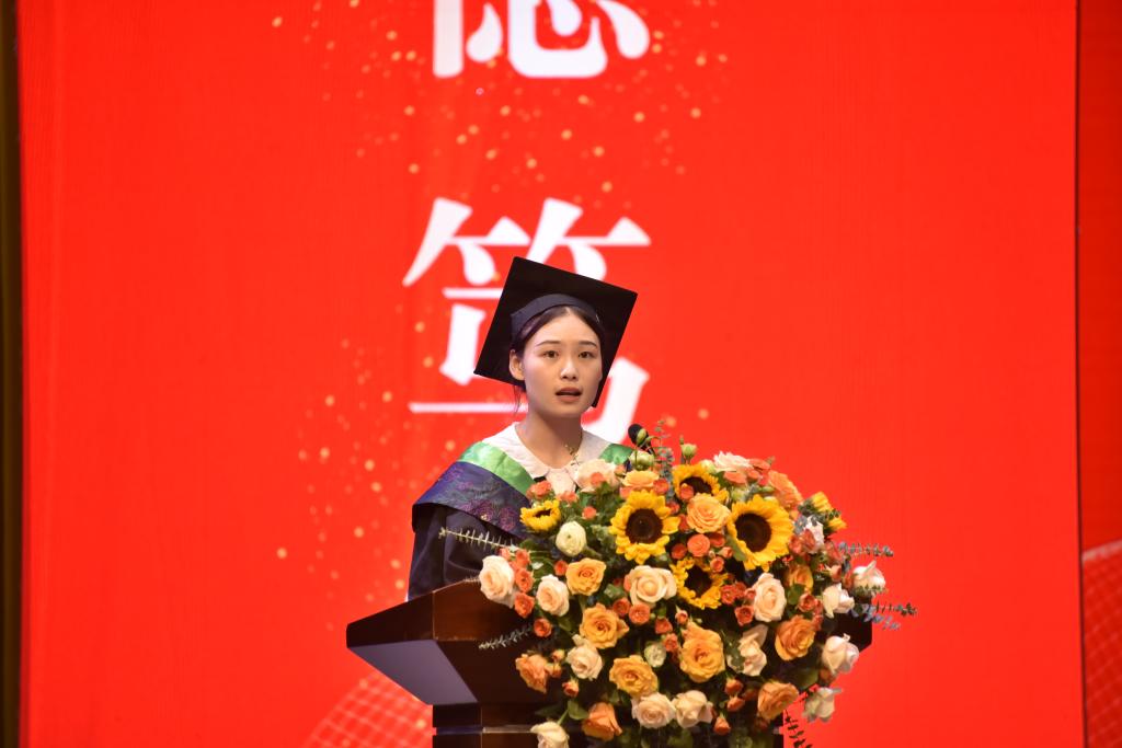 畢業(yè)生代表2021級園藝技術(shù)三年班曾佳瑩同學(xué)上臺(tái)發(fā)言,她回顧了在學(xué)校生活學(xué)習(xí)的點(diǎn)滴,表達(dá)了對母校、老師和同學(xué)的感激之情,同時(shí)也展望未來,表示將不忘初心,砥礪前行,為社會(huì)做出自己的貢獻(xiàn)。