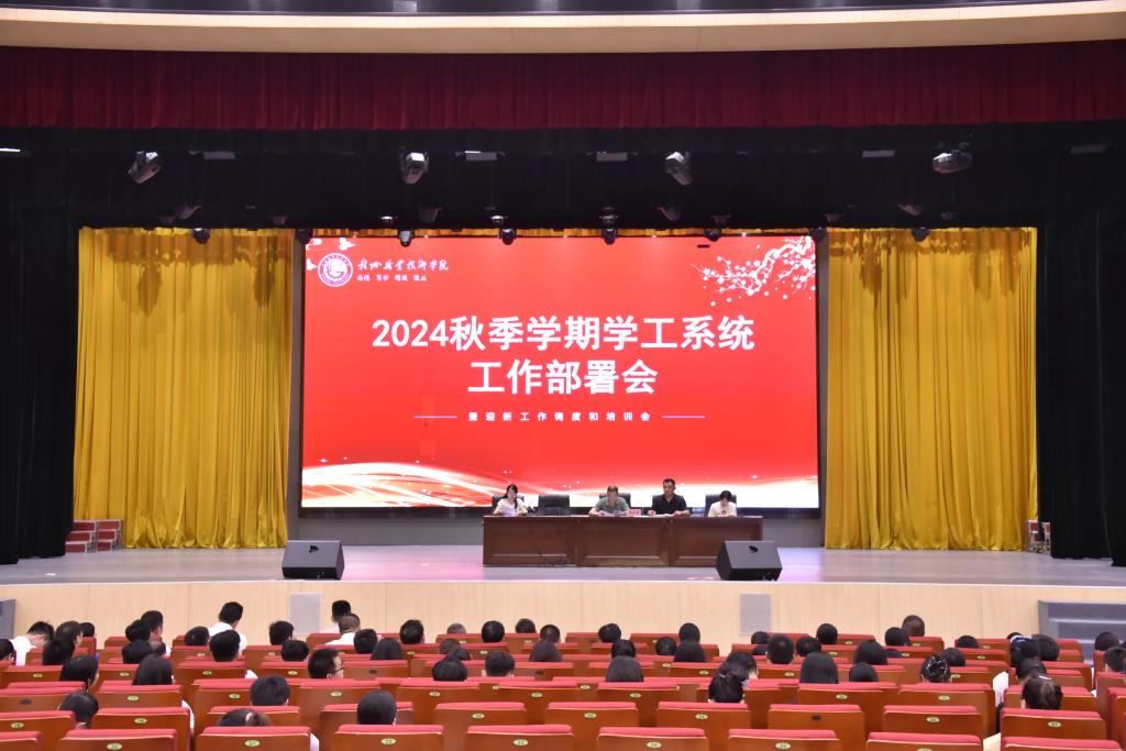 9月14日,學校組織召開2024秋季學期學工系統工作部署會暨迎新工作調度會和培訓會,學校黨委委員、工會主席熊曉林出席會議,學生管理與就業服務處處長邱欣菊主持會議。團委、保衛處、各二級學院相關同志和全體班主任、輔導員參加會議。