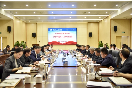 11月4日上午,《關于加快推進贛州職業技術學院建設高水平高職學校的若干措施》(以下簡稱《若干措施》)工作協調會在我校召開,市委常委、組織部部長田輝出席會議并講話,市委副秘書長楊興國主持會議,《若干措施》編制單位中國教育科學研究院高教所所長張男星,中國教育科學研究院副研究員、博士翁秋怡,中國教育科學研究院助理研究員、博士周京博,市委組織部副部長、市委編辦主任林星,市委組織部副部長(正處級)郭德帥,市委教育工委書記、市教育局局長孫傳忠,市科技局黨組書記、局長郭瀾,市財政局黨組書記、局長溫江濤,市人社局黨組書記、局長薛斌,市政府辦副主任劉冬良,市發改委四級調研員黎運平,市工信局黨組成員、副局長賴慶華等市直單位領導,學校黨委書記溫學延,黨委副書記、校長吳躍文等在家領導參加會議。