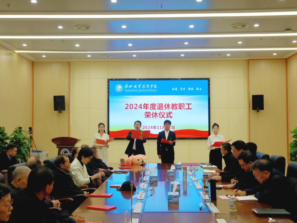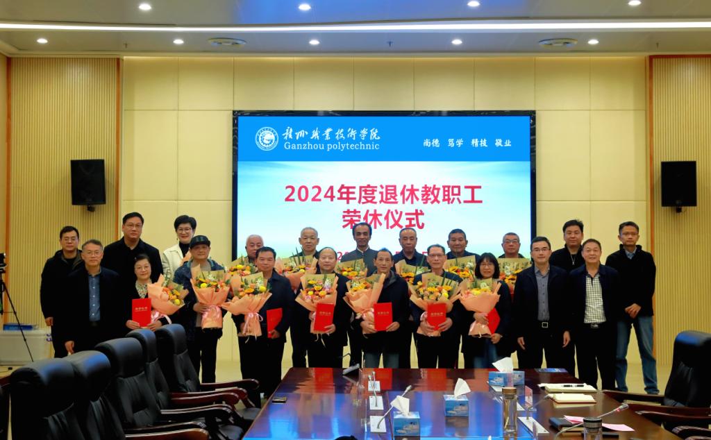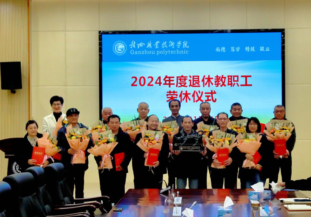 儀式上,湯曉軍宣讀了《贛州職業技術學院2024年教職工光榮退休決定》,吳躍文向退休教職工頒發證書和鮮花,熊曉林向退休教職工頒發榮休紀念品。
