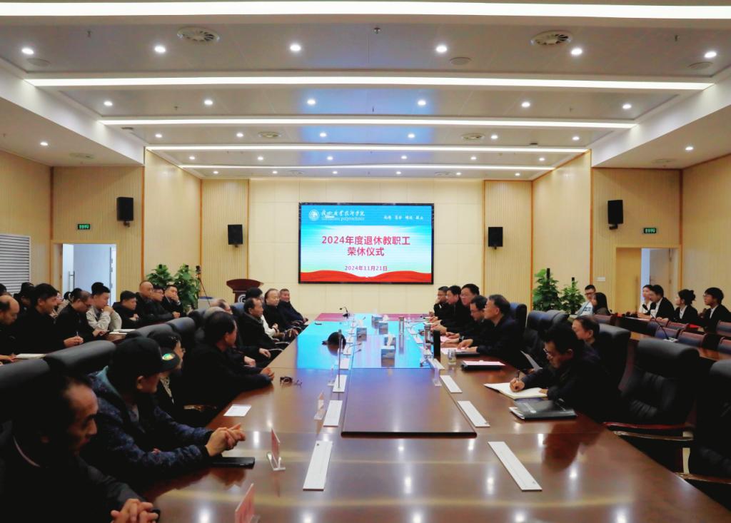 為進一步弘揚中華民族尊師重教優良傳統,感謝退休教職工無私奉獻的崇高敬意,表達對退休教職工愛崗敬業、激勵廣大教職工干事創業熱情,11月21日上午,學校在行知樓二樓會議室舉行退休教職工榮休儀式。黨委書記溫學延主持儀式并講話,黨委副書記、校長吳躍文,黨委副書記湯曉軍,黨委委員、工會主席熊曉林等相關校領導出席,各部門、二級學院負責人,2024年度退休教職工,青年教師和學生代表參加儀式。