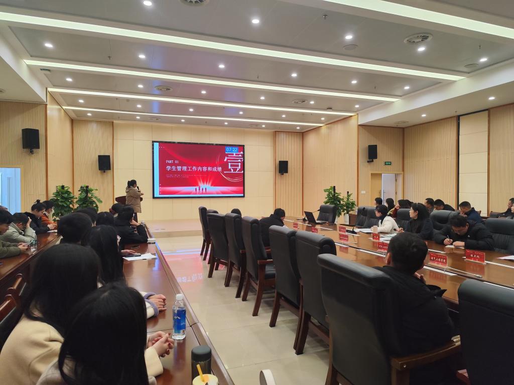 1月14日下午,學校2024年度專職輔導員述職大會在行知樓二樓會議室召開。黨委委員、副校長林梅,學生管理與就業服務處、保衛處、團委代表以及各二級學院學工負責人、全體專職輔導員參加會議。