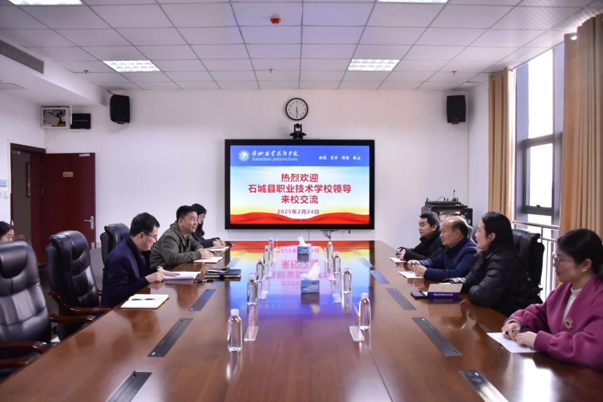 2月24日下午,石城縣職業技術學校黨支部書記溫燕發、校長吳曉蓉一行4人來我校座談交流,學校黨委書記溫學延出席座談會,并與來訪團隊進行了親切友好的交流。黨委委員、教務處處長于成龍,黨政辦公室、教務處等部門相關同志參加了座談會。