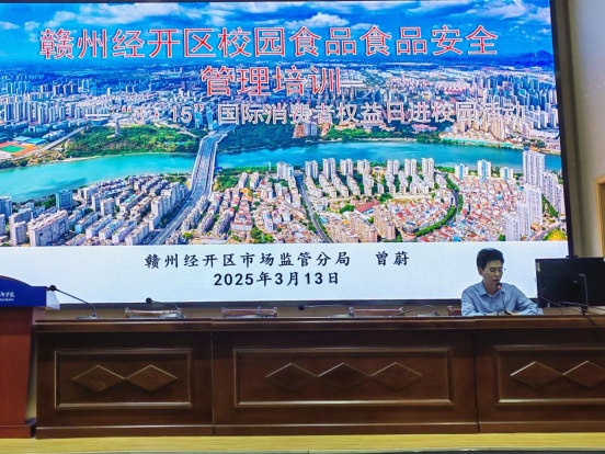 會上,特別邀請了贛州經開區市場監管局專業人員進行授課。培訓講師圍繞食品安全法律法規、食堂操作規范、食材采購與儲存、食品加工過程中的衛生要求、餐具清洗消毒以及食品留樣等關鍵環節,進行了全面且深入的講解。通過引用實際案例,生動剖析了食品安全事故的嚴重后果,強調了嚴格遵守食品安全規范的重要性,讓每一位參會人員深刻認識到自身工作在保障師生飲食安全中的關鍵作用。