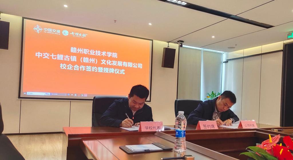 3月26日上午,學校與中交七鯉古鎮(贛州)文化發展有限公司校企合作簽約暨揭牌儀式在七鯉古鎮隆重舉行。學校黨委委員、副校長方敏,科研與對外交流合作處處長楊孟鴻,現代農林工程學院教師代表參加儀式。中交七鯉古鎮(贛州)文化發展有限公司總經理侯代英攜管理團隊成員共同參會。