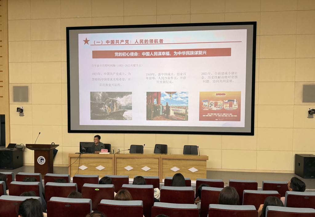 在授課中,湯曉軍首先深刻闡述了“聽黨話、跟黨走”的時代內涵。他指出,中國共產黨自成立以來,始終是人民的領航者,帶領中國人民取得了革命、建設和改革的偉大勝利,“聽黨話、跟黨走”有著深厚的歷史傳承,是中國人民在長期奮斗中得出的正確選擇。