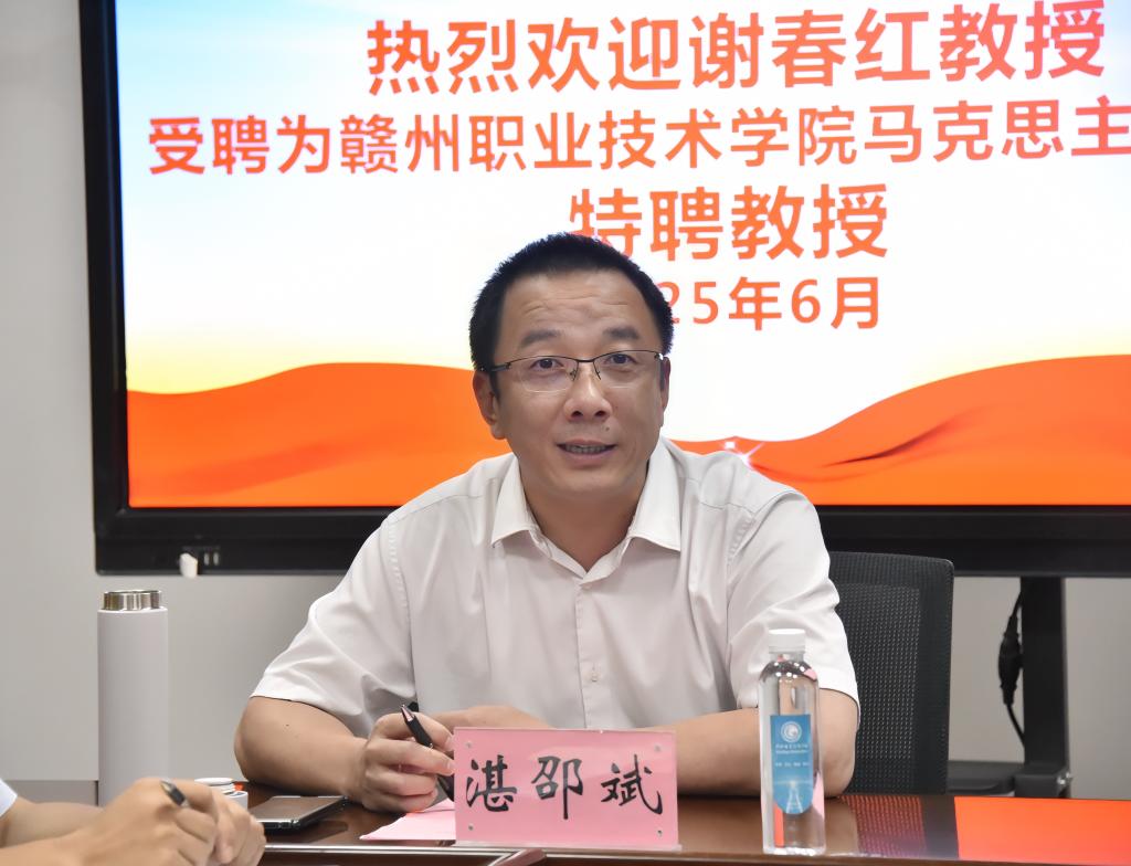 吳躍文在講話中指出,人才是第一資源,學校柔性引進“特聘教授”是立足學校高質(zhì)量發(fā)展需要。作為馬克思主義學院及贛州職業(yè)技術(shù)學院柔性引進的第一位正高級職稱專家,既是落實贛深教育對口合作協(xié)議的重要成果,也是學校打造“大思政課”育人格局的關(guān)鍵舉措。感謝深圳信息職業(yè)技術(shù)學院的大力支持。他強調(diào),謝春紅教授一直深耕馬克思主義理論教學與研究,在思政課教學改革、課題研究等領(lǐng)域成果豐碩,其學術(shù)視野與實踐經(jīng)驗將為學校思政課建設注入新動能。吳躍文寄語馬克思主義學院以此為契機,依托謝春紅教授的學術(shù)資源,推動馬克思主義學院教育教學能力全方位提升,力爭產(chǎn)出更多高水平的教學及科研成果。同時,通過謝春紅教授的傳幫帶,提升青年教師的教育教學能力和科研水平。