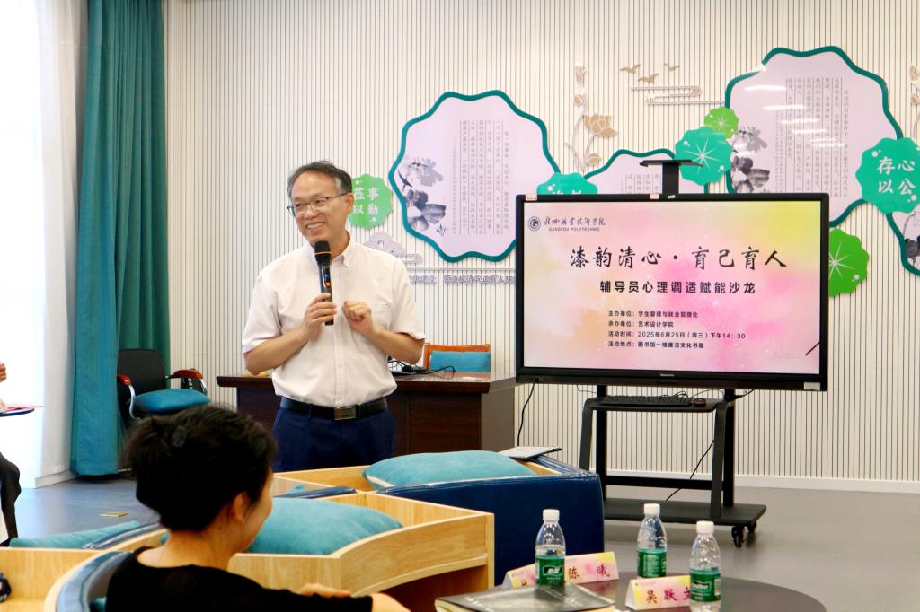 吳躍文在總結(jié)講話中從輔導(dǎo)員隊(duì)伍的重要性、輔導(dǎo)員的定位及成長、輔導(dǎo)員如何管理好情緒三個方面進(jìn)行了深入闡述。他指出,輔導(dǎo)員隊(duì)伍是落實(shí)立德樹人根本任務(wù)的關(guān)鍵力量,是學(xué)生思想引領(lǐng)與成長服務(wù)的指導(dǎo)者,一支高素質(zhì)的輔導(dǎo)員隊(duì)伍,對學(xué)生的全面發(fā)展、校園的和諧穩(wěn)定至關(guān)重要。他鼓勵輔導(dǎo)員們不斷提升專業(yè)素養(yǎng),加強(qiáng)心理學(xué)、管理學(xué)等理論學(xué)習(xí),注重說話溝通的藝術(shù),在服務(wù)學(xué)生的過程中實(shí)現(xiàn)自我成長。針對情緒管理問題,他結(jié)合自身經(jīng)歷,分享了如何在高壓工作中保持平和心態(tài)的經(jīng)驗(yàn)。他表示,輔導(dǎo)員工作壓力大、事務(wù)繁雜,容易產(chǎn)生情緒波動,但良好的情緒管理能力是職業(yè)素養(yǎng)的重要體現(xiàn)。他建議輔導(dǎo)員們學(xué)會合理宣泄情緒、理解情緒并且接納情緒,通過運(yùn)動、閱讀、交流等方式調(diào)節(jié)情緒,同時培養(yǎng)積極樂觀的生活態(tài)度,以穩(wěn)定的情緒狀態(tài)面對工作和學(xué)生。