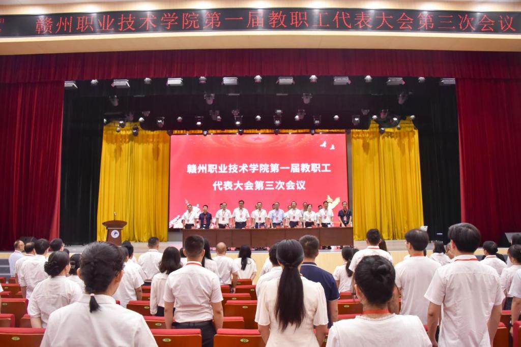 7月3日下午,學校第一屆教職工代表大會第三次會議在莊嚴的國歌聲中隆重開幕。黨委書記溫學延,黨委副書記、校長吳躍文等在家領導和教職工代表齊聚一堂,共商學校發展大計。會議審議并通過了《贛州職業技術學院職稱評審工作實施辦法》,為學校深化改革、提升治理能力注入新動能。