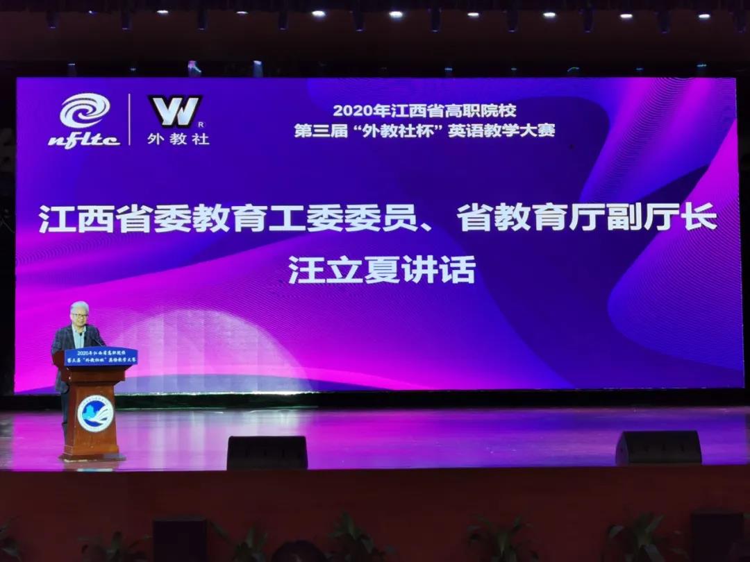 9月20日下午,2020年江西省高職院校第三屆“外教社”杯英語教學大賽頒獎典禮在江西旅游商貿職業學院文體中心隆重舉行。頒獎典禮上省教育廳副廳長汪立夏發表講話,他表示,教學大賽培育出了一批高素質、高水平、教學藝術精湛、具有改革創新精神的青年英語教師,他們已成長為我省高職院校外語教學的中堅力量,也成為青年教師學習的榜樣。大賽還在持續推動高職院校外語師資隊伍建設、促進教師發展、探索建設具有中國特色的高職外語教育體系方面發揮了重要作用。希望各校教學部門和教學研究機構齊心協力,總結經驗,不斷創新,培養一批又一批重師德、懂業務、愛學生的外語教學人才,組建一支又一支甘于奉獻、精于教學、勇于創新的教學團隊。