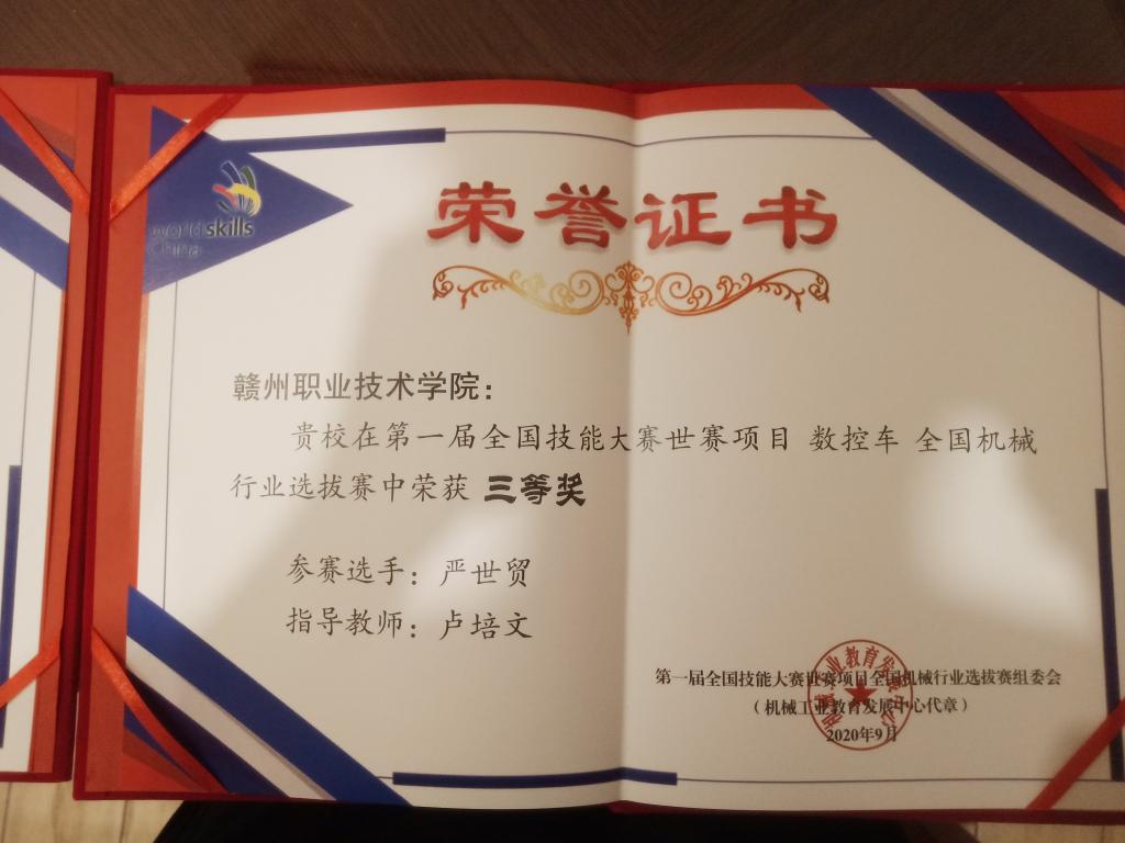在第一屆全國技能大賽世賽項目數控車全國機械行業(yè)選拔賽中,我院選手嚴世貿榮獲三等獎。