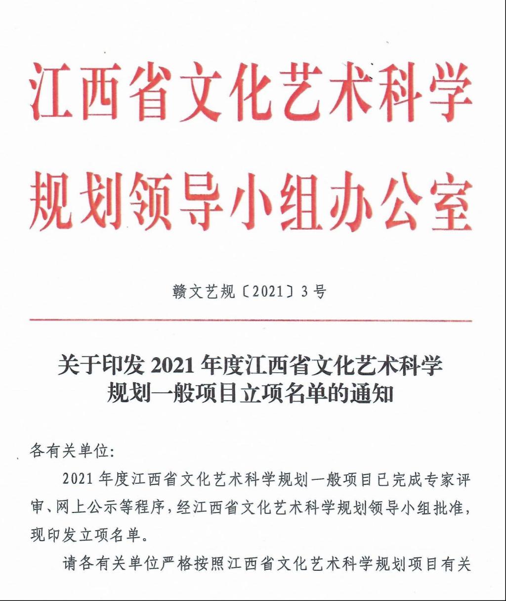 近日,從江西省文化藝術科學規劃領導小組辦公室文件《關于印發2021年度江西省文化藝術科學規劃一般項目立項名單的通知》(贛文藝規〔2021〕3號)獲悉,我院經濟管理系曾衛平同志主持的《江西贛州客家文化旅游發展路徑的研究》(編號:YG2021178;旅游產業研究類)獲批立項。同時,我院也是2021年度贛州市市屬高職院校中唯一獲得該項目立項的院校。