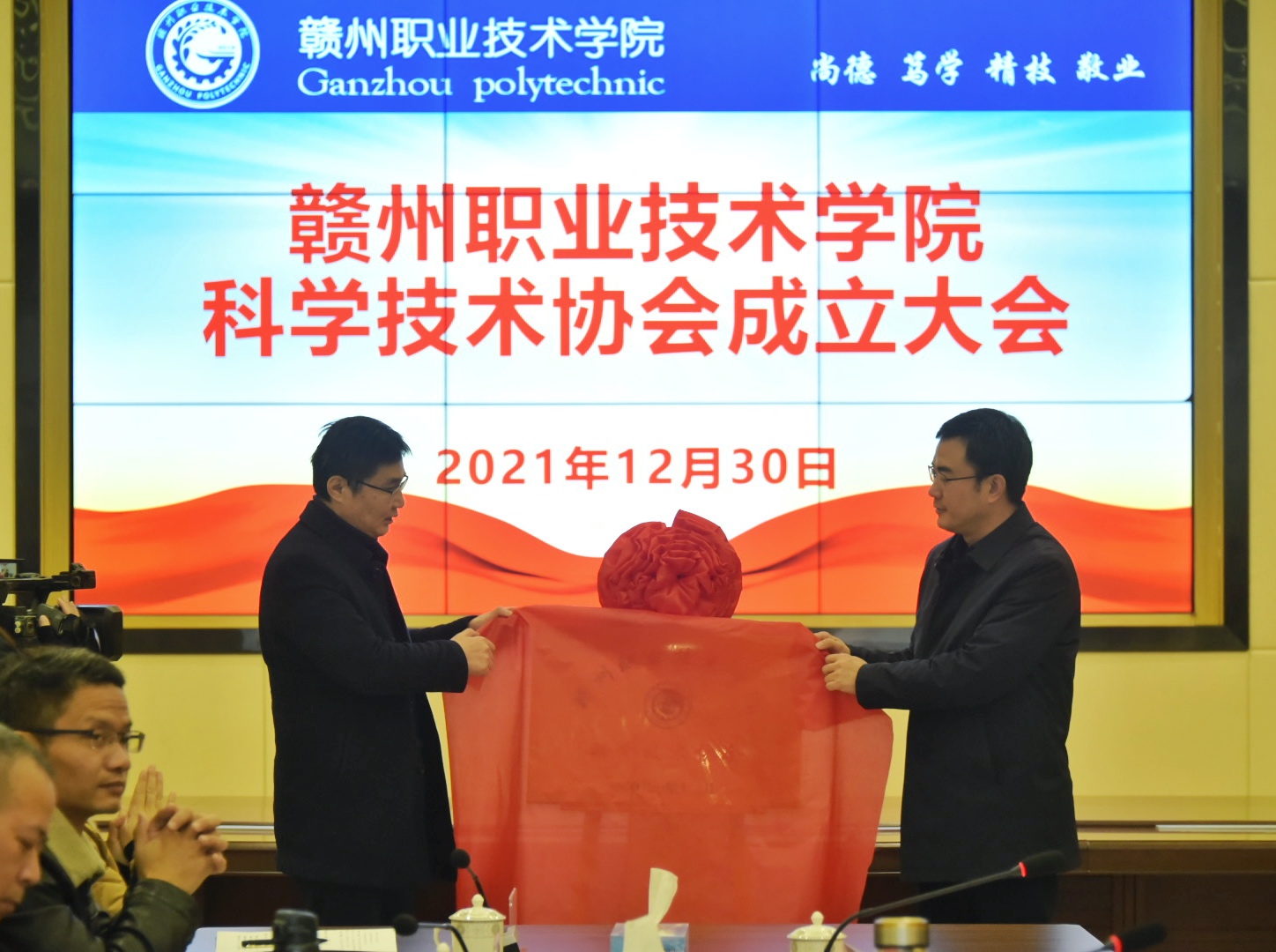 市科協(xié)副主席吳曉春與黨委書記溫學(xué)延共同為學(xué)院科學(xué)技術(shù)協(xié)會揭牌。
