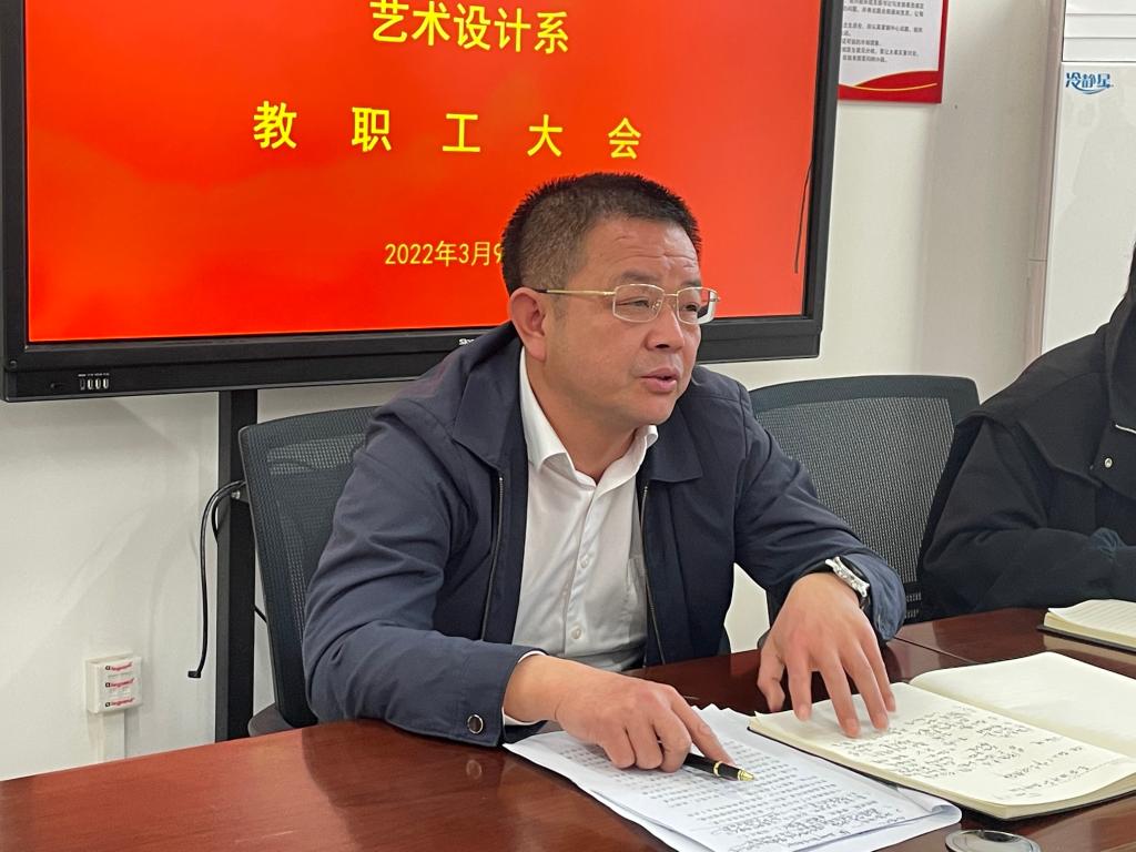 3月9日下午,藝術(shù)設(shè)計(jì)系召開(kāi)系部全體教職工大會(huì),院領(lǐng)導(dǎo)歐陽(yáng)榮華出席會(huì)議并與藝術(shù)設(shè)計(jì)系全體人員進(jìn)行了親切的座談,此次會(huì)議由藝術(shù)設(shè)計(jì)系負(fù)責(zé)人余萬(wàn)霞主持,系部全體教師、輔導(dǎo)員、組織員以及實(shí)驗(yàn)員參加會(huì)議。