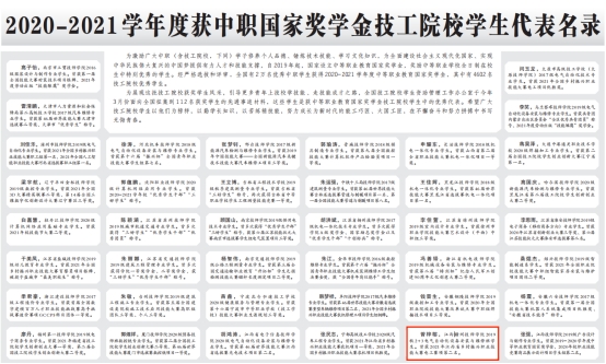 近日,從中國勞動保障報中獲悉,我院(江西贛州技師學院)學子曾梓榕是獲中等職業教育國家獎學金技工院校學生中的優秀代表,上榜2020-2021學年度獲中職國家獎學金技工院校學生代表名錄,一展我院學子風采。望學院學子以該生為榜樣,志存高遠,力爭上游!