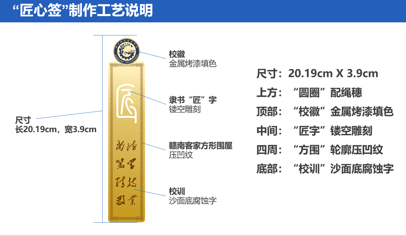 “匠心簽”將校園文化、贛南文化、工匠文化有機(jī)融為一體,既意蘊(yùn)深遠(yuǎn),又經(jīng)濟(jì)實(shí)用,有很高的紀(jì)念意義和使用價(jià)值。