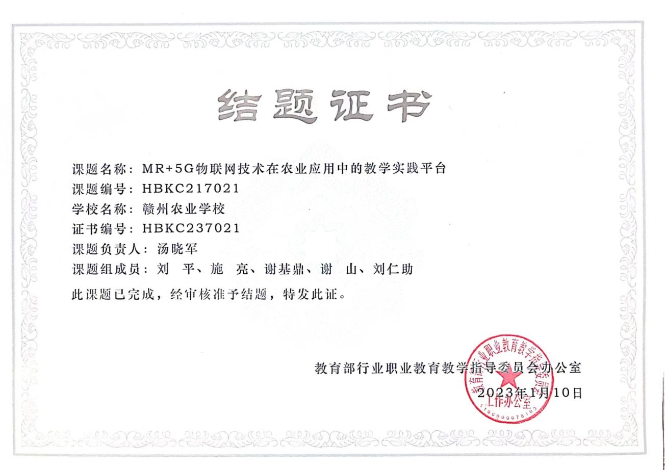 近日,從教育部行業(yè)職業(yè)教育教學指導委員會工作辦公室獲悉,我院以學院黨委副書記湯曉軍為課題負責人申請立項的省部級課題《MR+5G物聯(lián)網(wǎng)技術在農(nóng)業(yè)應用中的教學實踐平臺》(編號:HBKC2017021)通過一年多的研究實踐,經(jīng)課題組專家評審鑒定,順利結(jié)題。