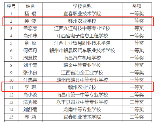近日,江西省教育廳對2023年江西省職業院校技能大賽中等職業學校班主任能力比賽獲獎名單進行公示,通過校賽、市賽、省賽三級選拔,學院教師鐘奕、李琪榮獲一等獎。
