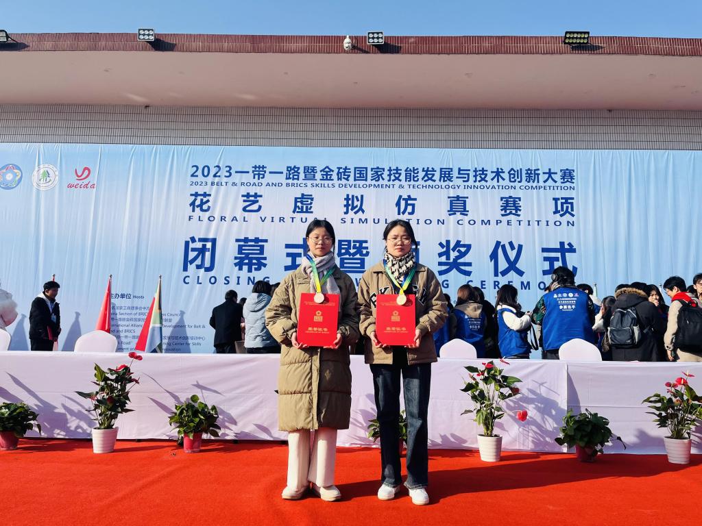 11月24日至26日,“2023一帶一路暨金磚國家技能發展與技術創新大賽”花藝虛擬仿真賽項在河南林業職業學院順利舉辦,來自全國104所中高職院校的150余支參賽隊齊聚洛陽,逐夢賽場。經過激烈的角逐,我院現代農林工程系謝長智、吳姜澳老師指導的張佳潤、謝珊珊同學榮獲三等獎。