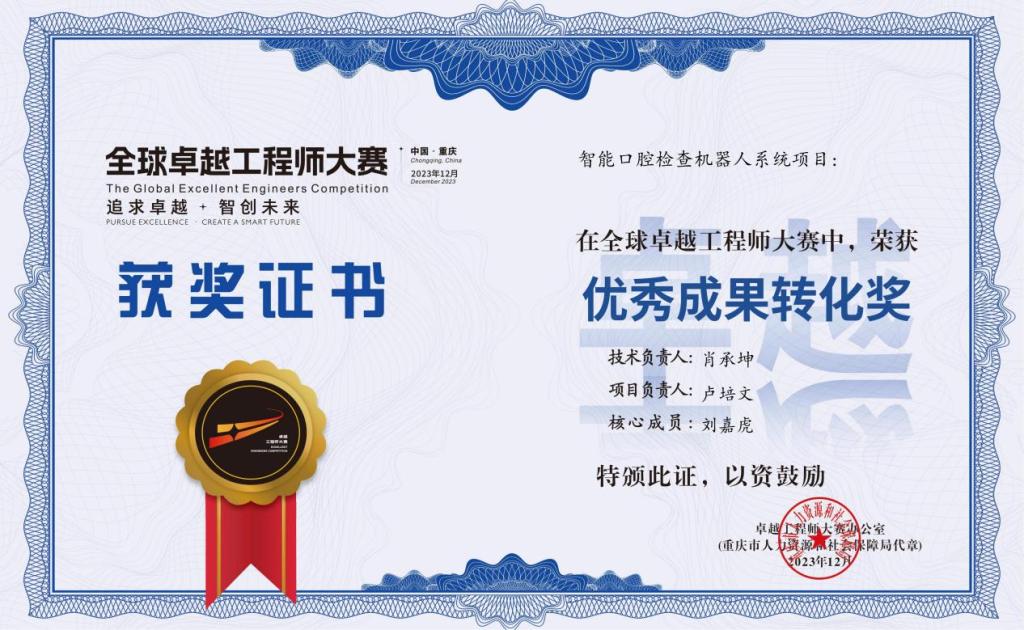 全球卓越工程師大賽自今年8月啟動以來,累計吸引來自25個國家(地區)1005個項目(團隊)報名參賽,其中在創新挑戰賽道中總計申報項目372個,經過激烈角逐,智能制造系教師團隊盧培文、肖承坤、劉嘉虎申報的項目榮獲優秀成果轉化獎。