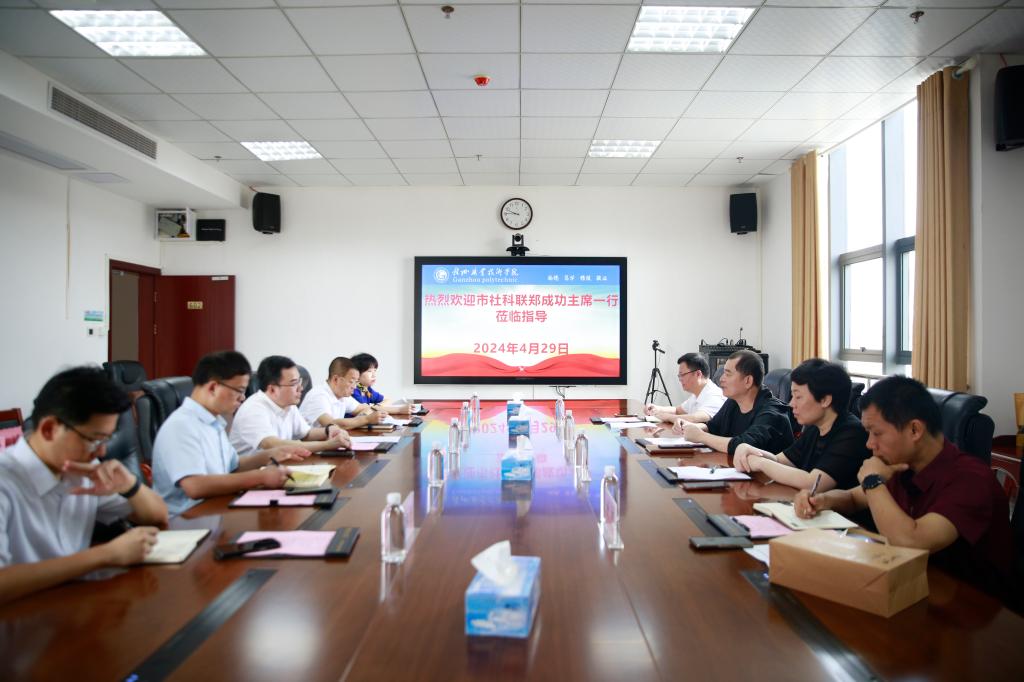4月29日上午,贛州市社會科學界聯(lián)合會主席鄭成功一行蒞臨我校調研,調研座談會由黨委書記溫學延主持,副校長歐陽榮華和相關職能部門人員參加座談會。
