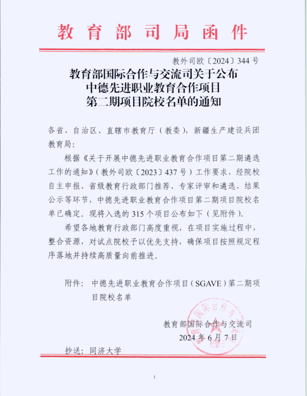 根據《關于開展中德先進職業教育合作項目第二期遴選工作的通知》(教外司歐〔2023〕437號)的文件要求,在院校申報、省級教育廳行政部門遴選推薦的基礎上,中德先進職業教育合作項目秘書處按照評估標準和流程,協調組織專家開展第二期申報院校的遴選評估工作。