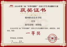在剛剛結束的第三屆“中外傳播杯”全國大學生翻譯大賽中,我校英語教師劉智臨指導的學生付有榮獲高職高專組全國一等獎,鄒雨露同學以及湯文娟同學喜獲高職高專組全國三等獎,彭玲同學獲優(yōu)秀獎。“中外傳播杯”全國大學生翻譯大賽是由中共中央直屬事業(yè)單位外文局組織承辦的全國性翻譯比賽,是全國大學生翻譯類比賽的權威比賽。