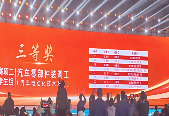 11月17日至11月20日,以“綠色驅動夢想·新質引領未來”為主題的第四屆全國新能源汽車關鍵技術技能大賽決賽在安徽省蕪湖市順利結束,由李建飛、仲先國老師指導汽車工程學院學子廖梓程、朱智豪參加汽車零部件裝調工(汽車電動化技術方向)學生組賽項,通過江西省選拔賽進入全國決賽,在全國46支決賽隊伍中以第18名的成績榮獲全國三等獎。
