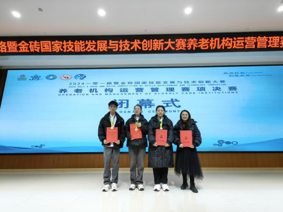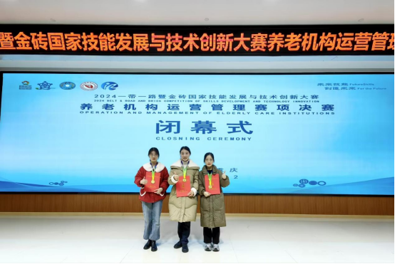 12月21日上午,2024“一帶一路”暨金磚國家技能發展與技術創新大賽暨首屆養老機構運營與管理賽項決賽在重慶市拉開序幕。經過激烈角逐,鐘奕、華景荷、龍宜榮獲教師組團體一等獎,林燕、葉新珠老師指導的學生楊芳、賴延東、陶欣圳榮獲學生組團體三等獎,贛州職業技術學院榮獲最佳組織獎。此次大賽與來自教師組、本科組、高職組、中職組等59個隊伍同臺競技,我院師生在比賽中展現出了扎實的專業技能、敏捷的創新思維和出色的團隊協作能力。