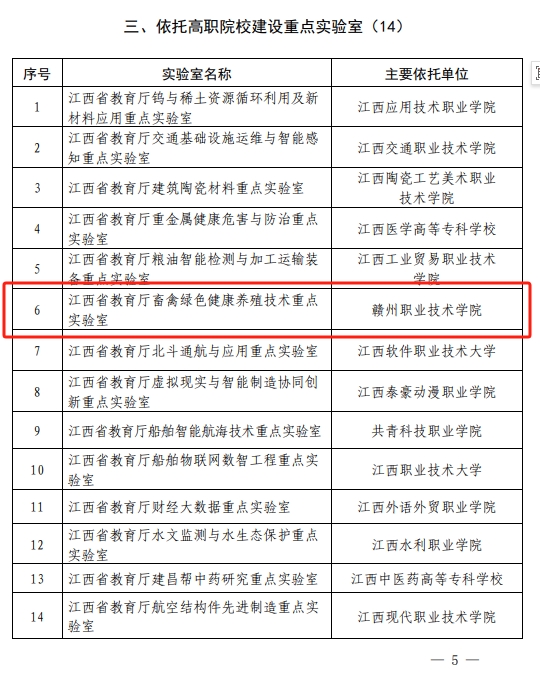 近日,江西省教育廳公布了全省重點實驗室建設立項名單,我校申報的“畜禽綠色健康養殖技術重點實驗室”獲批,成為我校首個省級重點實驗室。這一成果標志著學校“雙高”建設取得重要進展,在技術創新工作中取得重大突破。該重點實驗室的立項將有助于激發學校在現代畜牧生產技術領域的科研潛能,為支撐鄉村振興戰略需求和打造服務江西現代畜牧產業高質量發展的應用型科創平臺提供動力。
