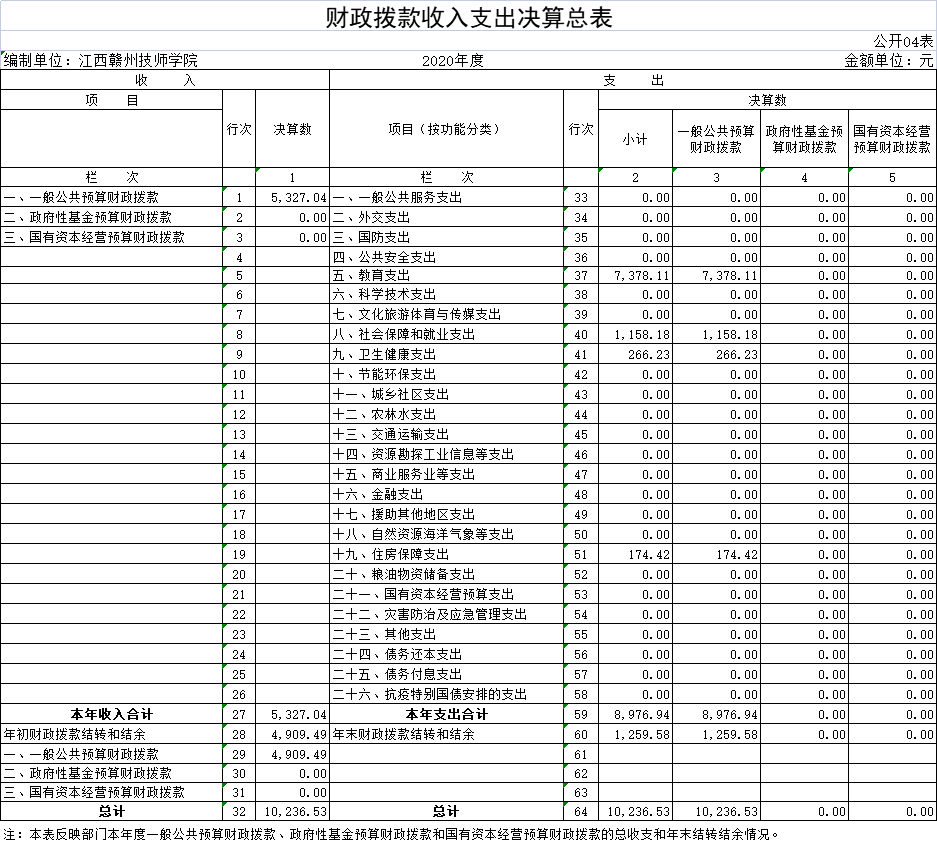 四、財(cái)政撥款收入支出決算總表