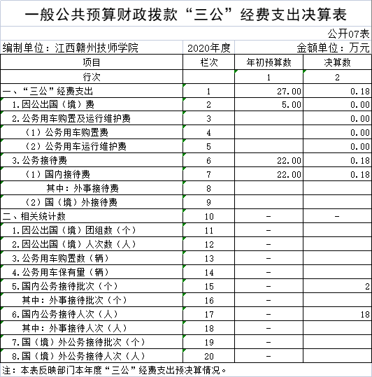 十六、“三公”經費:指各部門因公出國(境)費、公務用車購置及運行費和公務接待費。其中,因公出國(境)費指單位公務出國(境)的住宿費、旅費、伙食補助費、雜費、培訓費等支出;公務用車購置及運行費指單位公務用車購置費及租用費、燃料費、維修費、過路過橋費、保險費、安全獎勵費用等支出;公務接待費指單位按規定開支的各類公務接待(含外賓接待)支出。