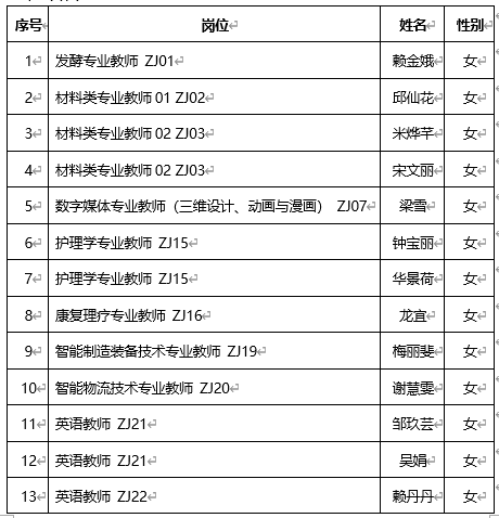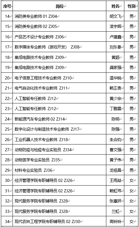 根據(jù)《贛州職業(yè)技術(shù)學(xué)院2024年面向社會(huì)公開招聘工作人員公告》要求,本次招聘報(bào)名、資格審查、筆試、面試、試講、體檢、政審考察等程序已完成,現(xiàn)將擬聘用人員名單公示如下: