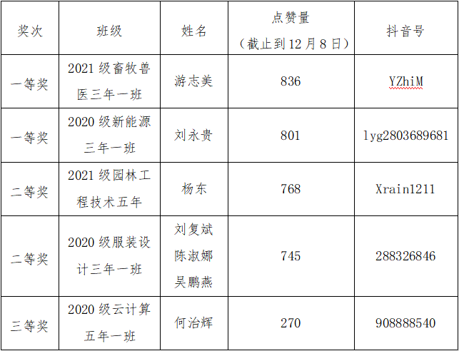 根據《關于開展第二屆“贛職杯”抖音短視頻大賽的通知》要求,經各部門推薦及組委會評選,現將第二屆“贛職杯”抖音短視頻大賽獲獎名單公示如下: