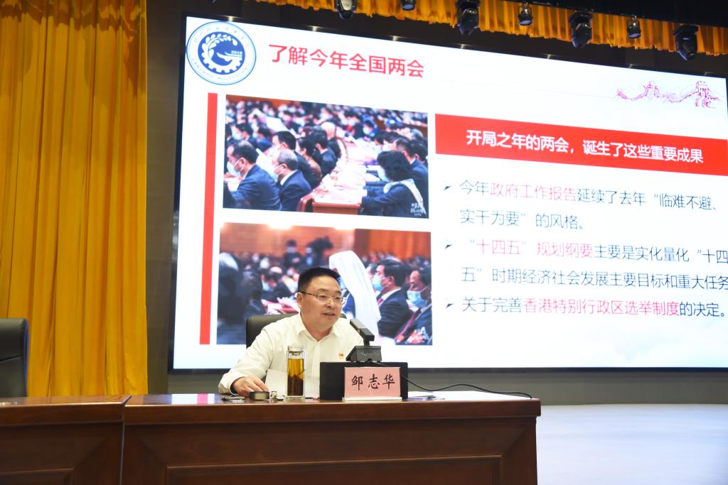 鄒志華書記在講座中指出,全國“兩會”精神,重點把握推動高質量發展的內涵要求,把握建設高質量教育體系的目標要求,把握保障人民健康優先發展的戰略要求,把握開展黨史學習教育的意義要求。