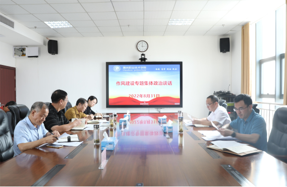 為貫徹落實《中共贛州市委關于開展政治談話加強對“一把手”和領導班子監督的實施意見》及市委辦公室《關于進一步規范政治談話工作有關事項的通知》文件精神,8月31日下午,學院在行知樓6樓會議室開展作風建設專題集體政治談話,學院黨委書記溫學延對院領導班子成員開展集體政治談話。會議由學院黨委副書記、院長李方柏主持,全體在家院領導班子成員參加會議,相關職能部門負責人列席會議。