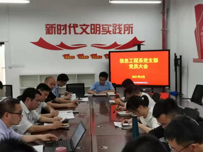 4月2日下午,信息工程系黨支部在應(yīng)星樓415黨員活動室召開了4月黨員大會,會議以“學(xué)習(xí)習(xí)近平總書記在黨史學(xué)習(xí)教育動員大會上的重要講話精神”為主題展開,支部書記吳輝生同志主持會議,支部全體黨員參加。