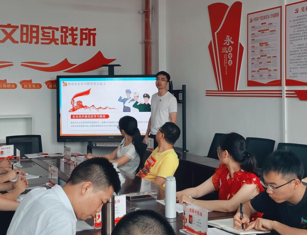 集中學習完畢后,謝長智同志講述了江善忠“死到陰間不反水,保護共產黨萬萬年”的紅色故事,王明瑞同志誦讀了無產階級革命家夏明翰寫給妻子鄭家鈞的紅色家書。廖金深為大家講授了“學黨史悟思想,辦實事開新局”的微黨課。然后支部為張俊華同志過了政治生日,并由他帶領全體黨員重溫了入黨誓詞。