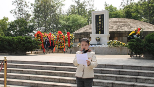 活動現場,蒼松翠柏環繞的烈士紀念碑前,全體人員莊嚴肅立。在雄壯的國歌聲中,祭掃儀式拉開序幕。教師黨員代表高凱、團員學生代表屈思成緩步上前,向烈士紀念碑敬獻花圈,寄托深切哀思。其他黨員師生和團員則手捧菊花,依次獻于烈士碑前,全體師生向烈士紀念碑三鞠躬、默哀一分鐘以表示對革命先烈的無限哀思,朵朵白花寄托著“畜力牧心”的深情傳承。